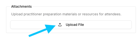 Under Attachments, add any additional class resources that may be useful for the practitioners by clicking [Upload File] and selecting the files.