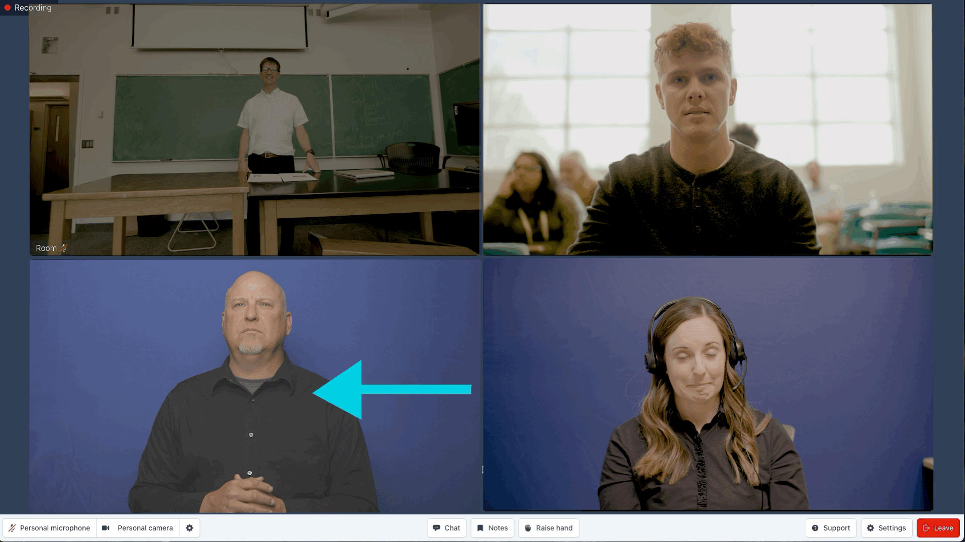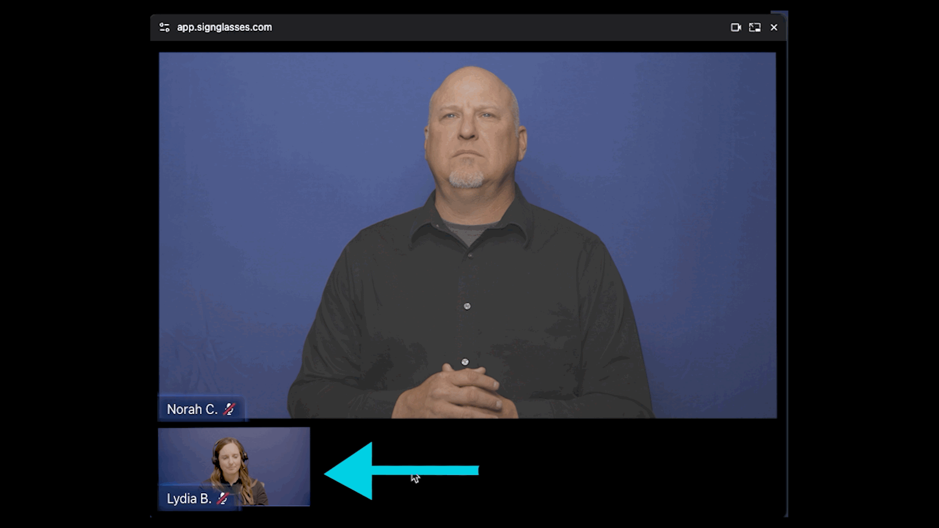 If you have more than one interpreter, you can choose which one shows up big in the pop-out window by clicking on the smaller video. Each click switches which interpreter is in focus.